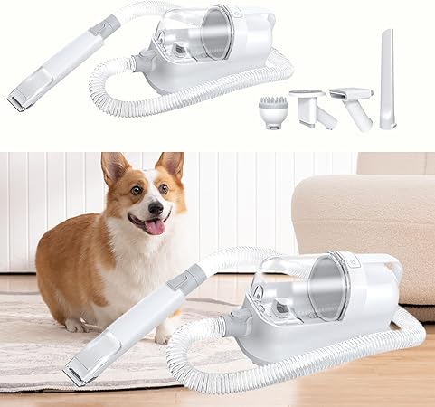 - 5-in-1 Grooming Kit – Includes deshedding brush, grooming brush, electric clipper, cleaning brush, and nozzle head.